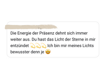 Du festigst dich spürbar in deiner unverletzten Natur. Gedanken verlieren ihre Sogkraft und Gefühle ihre Ladung. Das Leben fließt jetzt frei durch dich und verliert seine Kraft, dich von dir selbst zu entfernen.